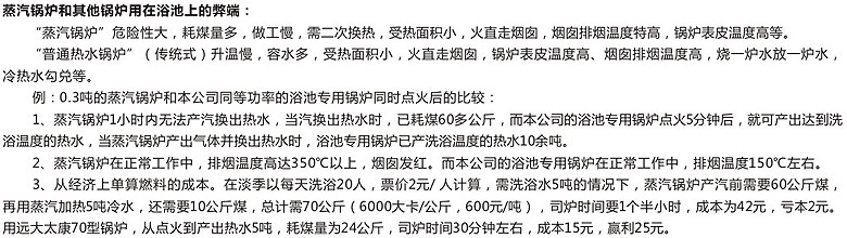 其他行業(yè):(油田、汽車)蒸汽清洗行業(yè)、(賓館、宿舍、學(xué)校、攪拌站)熱水供應(yīng)、(橋梁、鐵路)混凝土養(yǎng)護(hù)、(休閑美容會(huì)所)桑拿洗浴、熱交換設(shè)備等